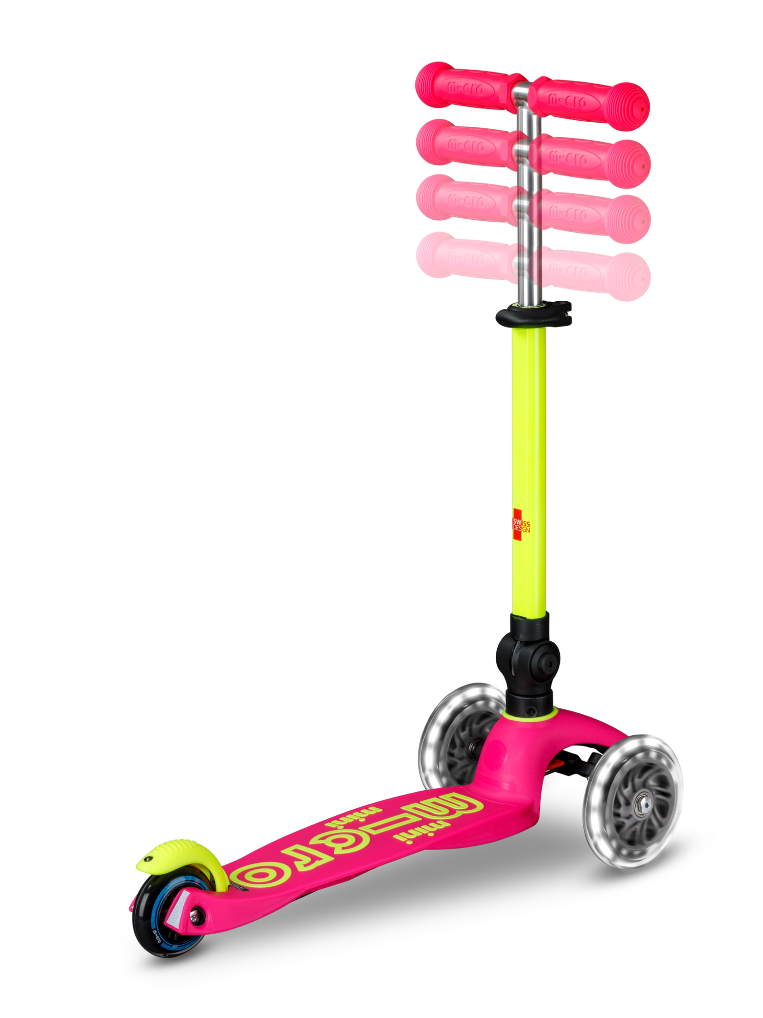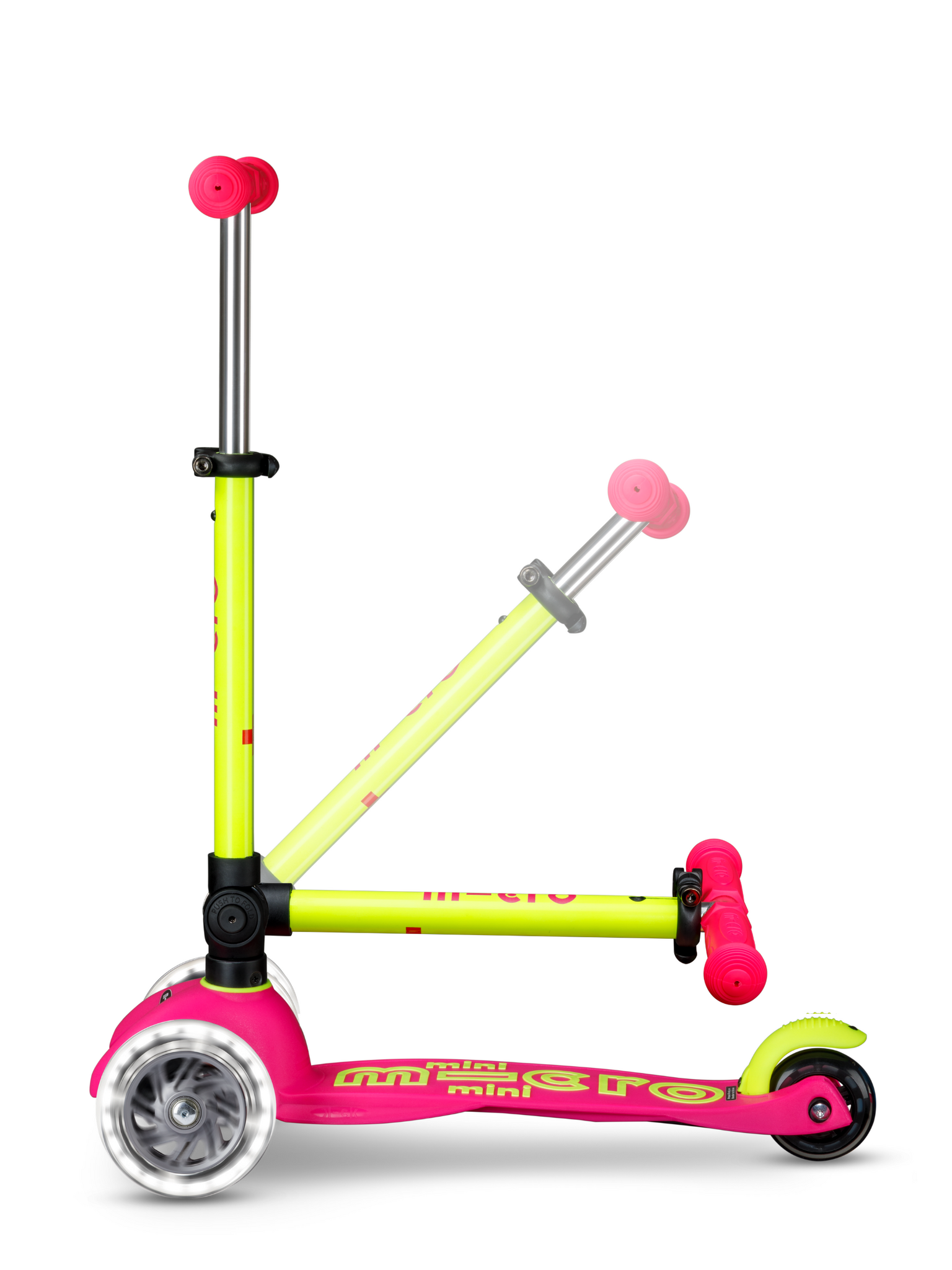 Mini Micro scooter Deluxe foldable LED Pink/Yellow