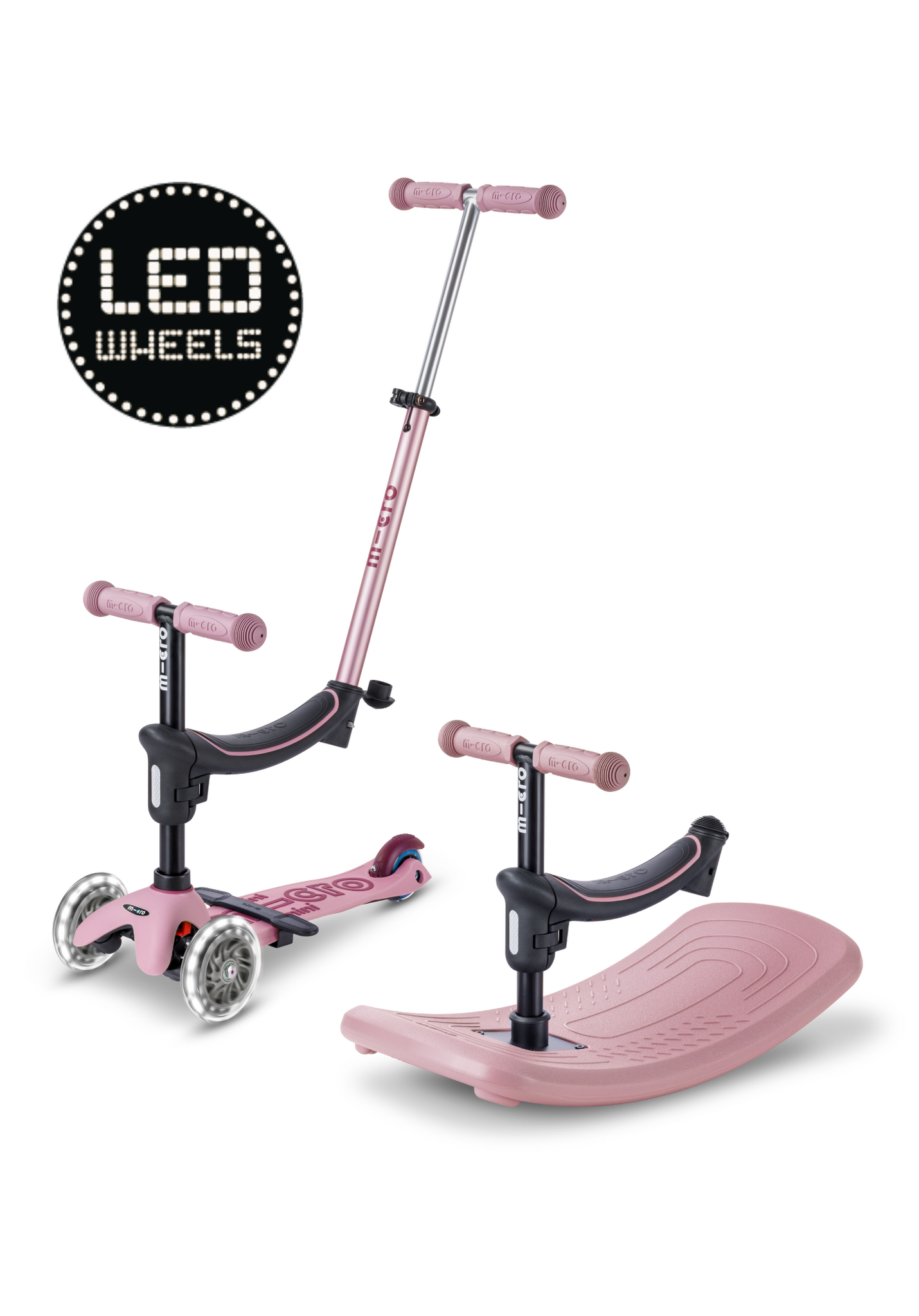 Mini Micro 6en1 trottinette Rock & Go LED Rose